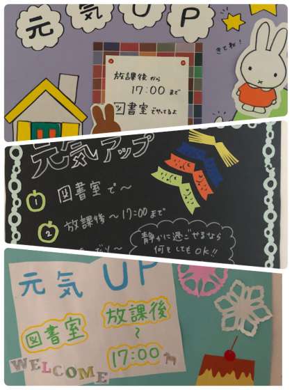 素敵なポスターを元気アップの方、サポーターの方、図書館補助員の方が作ってくれています。