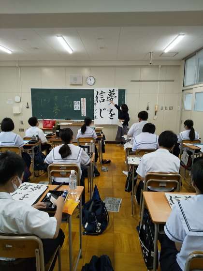 毛筆で、行書体『夢を信じ(る)』を学習しました。