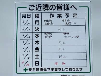 蒸し暑い日が多くなって来ています。安全第一で、今週も基礎配筋、コンクリート打設外構工事に取り組みます。