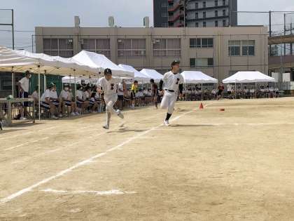 部活動対抗リレーは、真剣勝負の中にも、さわやかな笑顔あふれるリレーになりました。