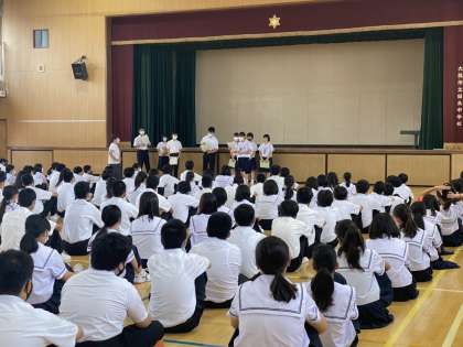 全校集会では、教頭先生のお話があり「七転び八起き」の言葉を通して、夏休みへ向けて、それぞれが目標を決めて、大きく成長する夏にしていこう!と呼びかけました。