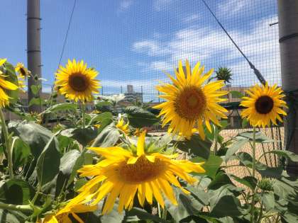 校庭のひまわりが満開です。