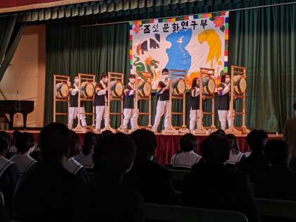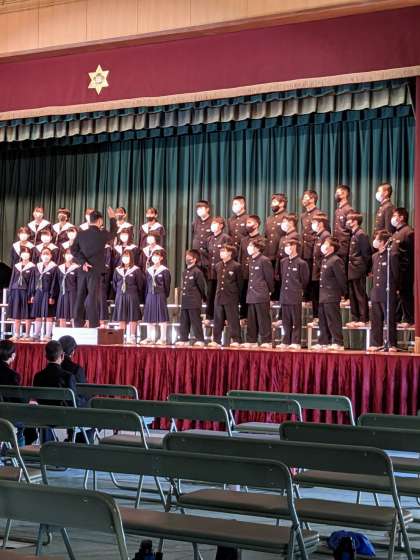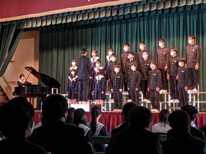 ステージの部では、朝文研の両面太鼓が披露され、合唱コンクールでは、全学級がこの日までに練習してきた成果を存分に発揮し、素敵なハーモニーを奏でてくれました。