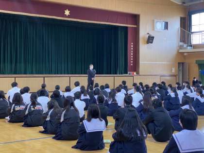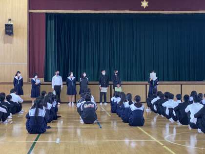 生徒集会では、各委員会から今月と来月の目標の発表がありました。
