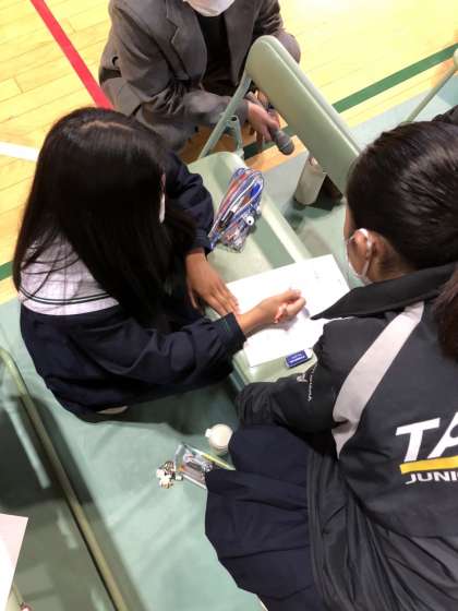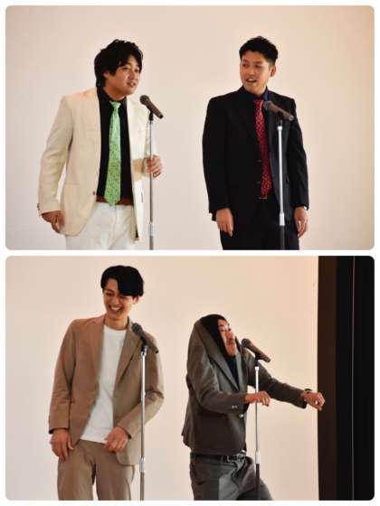 お笑いコンビのダブルヒガシさんとツートライブさんに来ていただき、ネタ作りを通して、表現する力について学びました。体験を通して、みんな楽しく学ぶことができました。