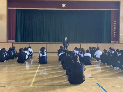 全校集会で、校長先生から、面倒だと思うことでも、行動してみるとそうでもなかったり、目標が達成できたりすることもあり、「まずは行動を起こしてみよう!」と生徒に呼びかけました。
