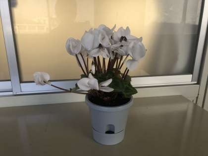 PTAのOB・OGの方と地域の方よりお花を各学級にポインセチアとシクラメンの2鉢いただきました。