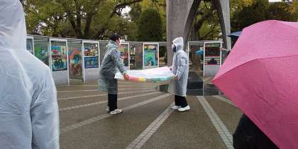 2年生の時に作成した折り鶴モニュメントを奉納しました。