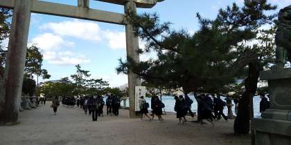 海沿いの道で厳島神社に向かいます。