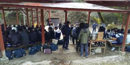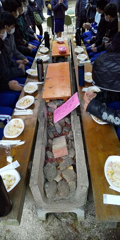 佐伯国際アーチェリーランドにて昼食、冬の野外チャーハン、貴重な体験です。