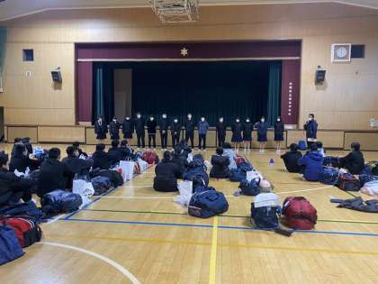 3年生の明日の登校時間は、9時30分です。今晩は、ゆっくり休んでくださいね。