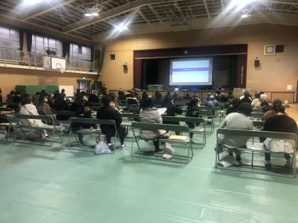 4月から田島南小学校が開校するため、小学校の新入生保護者説明会を本校の体育館で行いました。