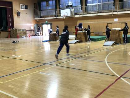 2年生は、体育で跳び箱をしています。見事な台上前転を披露していました。