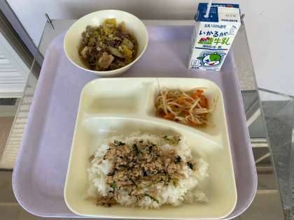 すき焼煮、もやしとにんじんの甘酢あえ、ツナっ葉いため、ごはん、牛乳でした。