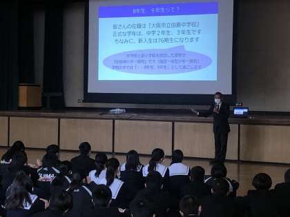 校長先生から、小中一貫校になることで、変化する学校生活について説明がありました。