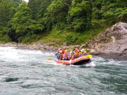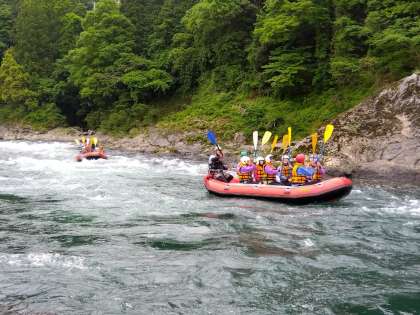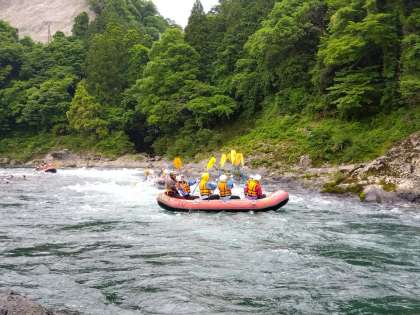 激流を乗り越えたら、パドルをあげて互いを讃え合う決めポーズ「ハイファイブ!」