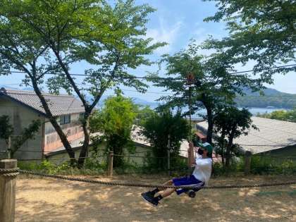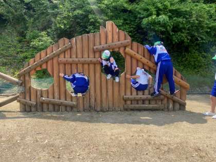 アスレチックは、意外と難しく、みんな一生懸命チャレンジしています。