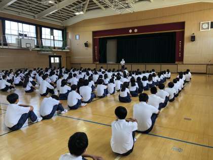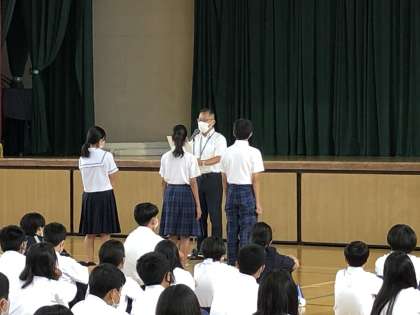 校長先生からは、1学期終業式で「夏休みだからこそやりたかったことをしてください」というお話をしましたが「夏休みの思い出ができたよ」という人は、ぜひ担任の先生にお話ししてくださいとお話がありました。また、工事をしていたサブグランドがもうすぐ完成し、次は、メイングランド工事に入り、不便な生活が続きますが、不便な中で生まれた工夫は、環境が整ったときには大きな強みになるというお話もありました。