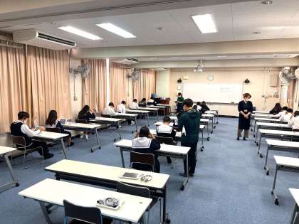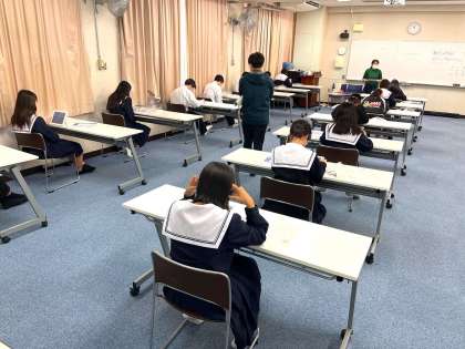 タブレット端末を使い、スピーキング、リーディングをしていました。