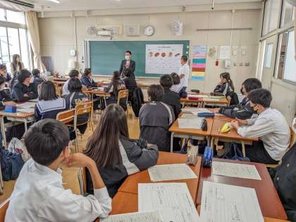先週に引き続き、11月17日(木)の5・6時間目に8年生で「探求型キャリア教育(2回目)」を行いました。今回は各班に分かれて相談し、一つの班から一つのパンの製品企画書を作成しました。今後どのようなパンが採用されていくのか楽しみです。