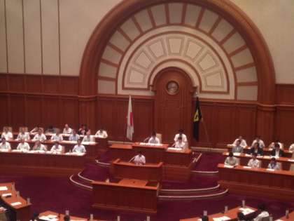 86名の子ども議員を代表し、井村さんは「中学校給食について」、岩田さんは「放置自転車について」、それぞれ市長に質問しました。
