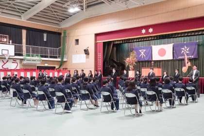 生憎の雨の中ではありましたが、令和5年度入学式が滞りなく無事実施することができました。第77期生として68名の新入生が真新しい制服に袖を通し、清々しい姿で入学式に臨みました。今年は田島南小中一貫校として2年目を迎えることから新たな成長を見せる大事な1年となります。新しい仲間とともに学校をより良い学校になるよう取り組んでまいります。