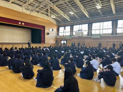 4月11日(火)に令和5年度の始業式が行われ、新年度がスタートしました。始業式では学校長や生徒指導主事などの話があり、その場にいた全員が引き締まる思いで新学期を迎えました。また、その後、新入生との対面式も行われました。