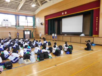 体育館で出発式を終え、予定通り9時過ぎに学校を出ました。