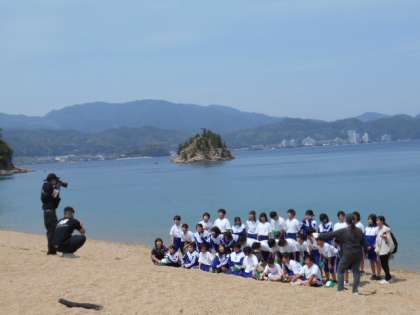 お弁当の後は、海をバックに集合写真を撮影しました。