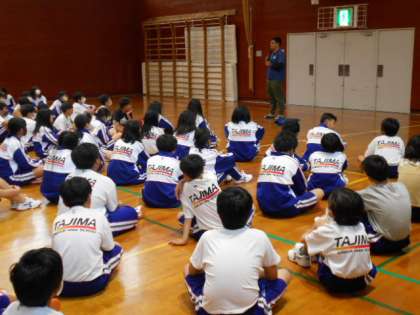昨晩からの雨で、カッター体験ではなく、体育館で昨晩のキャンプファイヤーの続きでレクレーションを行う形に予定変更となりました。