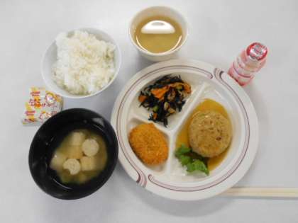 朝の集いの後、食堂での朝食です。
