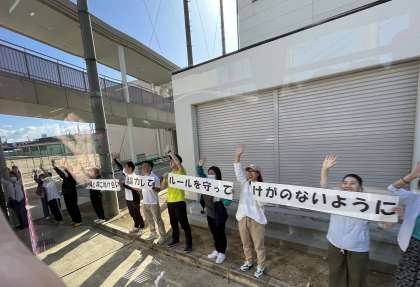 多くの保護者、教職員に見送られて、広島へ向けて、みんな元気よく出発しました。