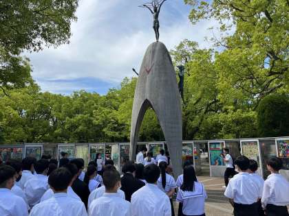 原爆の子の像にて、折り鶴アートの奉納、平和の誓いの言葉など平和への願いを込めて、セレモニーを行いました。
