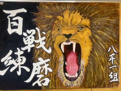 体育大会の続きです。右の写真は学級旗コンクールの1位になった8年1組のものです。