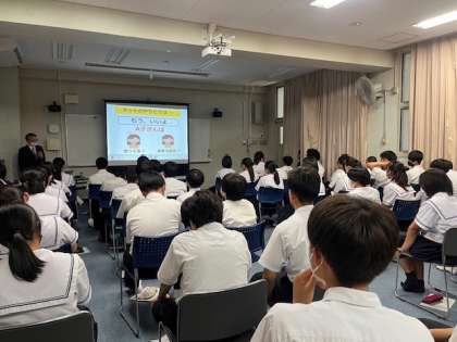 7月5日(水)に情報モラル教育を全学年で実施しました。講師にソーシャルメディアネットワークの竹内義博さんを迎え、SNSの利便性や危険性などについて動画等を使って詳しく説明していただきました。本校でもまだまだSNSにかかわる問題が後を絶ちません。今回の講習を機会にマナーやモラルをしっかり身につけてほしいものです。