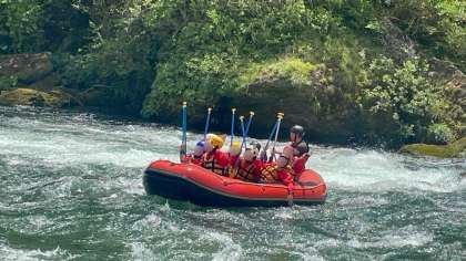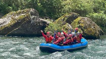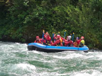段差のあるところでは、ボートが大きく揺れ、歓声があがっていました。