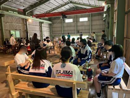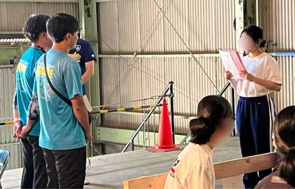 ラフティングを終え、ラフティングのスタッフにお礼を述べた後、お弁当を食べました。