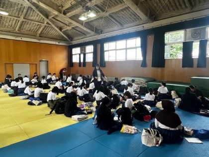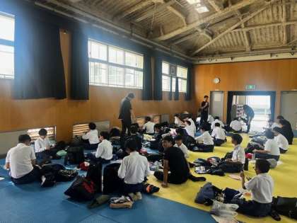 7年生は6時間目に格技室で、月曜日の一泊移住に向けて事前指導をしています。