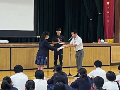 先週と今週の2回に分けて、体育大会の賞状伝達がありました。学級旗やスローガン、リレーなど多くの種目で優秀な成績を収めたことを発表したとき、生徒の皆さんから自然と大きな拍手が沸きあがりました。10日も経てばずいぶん前のことと感じてしまいますが、皆さんの心の中にはしっかりと思い出が残っているのだと思うと、本当にうれしくなりますね。