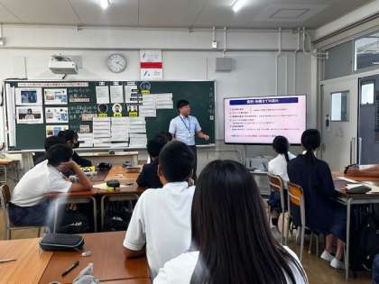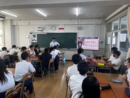 8年2組では「思春期における情報モラル教室」という授業を行いました。X(エックス)や最近のドラマを題材にしており、子どもたちは興味津々でした。