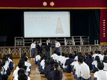 今朝の全校集会の前には、8年学級代表の皆さんによる発表がありました。