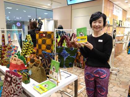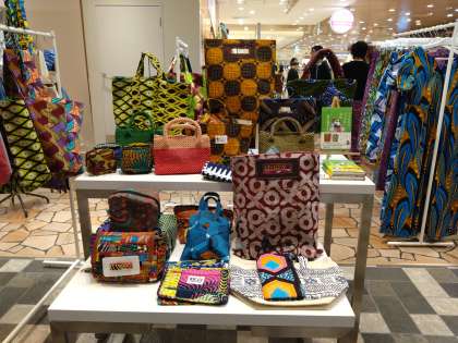 少し前になりますが、あべのハルカスでイベントがあり、仲本千津さんという方がアフリカで製作しているバッグが販売されていました。