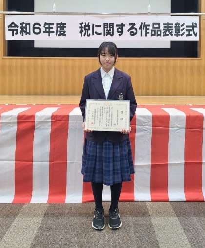 そこで、なんと!本校9年生の作文が『生野納税貯蓄組合連合会会長賞』を受賞し表彰されました!社会科の学習で税金について学び、自分の疑問や考えを調べたりまとめたりして、素晴らしい作文を作ってくれました。おめでとうございます!