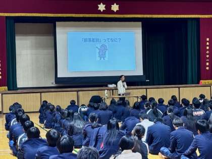 本日の6限に、公益財団法人『住吉隣保事業推進協会』の 友永 健吾 理事をお招きして、人権講話を実施しました。講話では、友永さんのプロフィールや実体験をもとにして、「部落問題とは何か」についてわかりやすくお話をしていただきました。