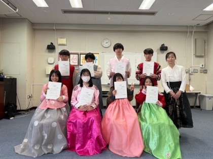 放課後の朝文研で、修了式を実施しました。9年生はチョゴリを身にまとい、修了証を受け取るとともに、この3年間の取組を振り返りました。7,8年生も一緒にお祝いし、式後のクイズ大会では李ソンセンニムから出される問題にチャレンジするなど、皆でとても盛り上がりました。