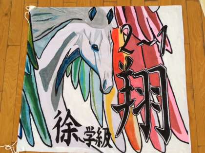 クラスの思いがこもった2年生の学級旗です。