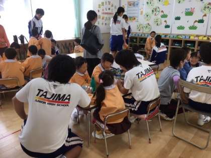 3年生は手作りおもちゃを持参して園児たちと楽しく交流しました。