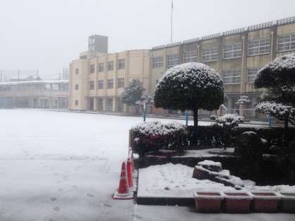 あいにくの大雪で、高校までの道のりが心配ですが、担任から注意事項を聞いた後、出発します。