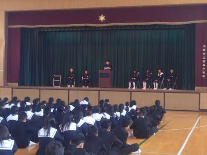 来年度の生徒会の役員を決めるため、立会演説会を行いました。