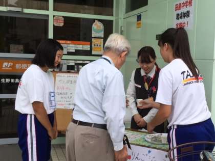 上 「生野田島郵便局」 ジュースの試飲販売をしました。